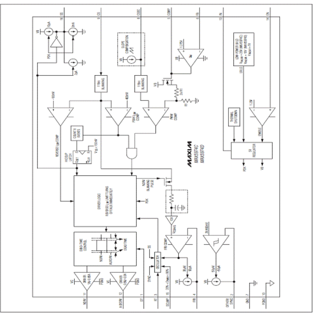 图2。MAX5974C/MAX5974D方框图