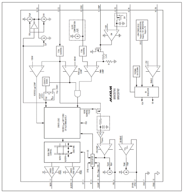 图1。MAX5974A/MAX5974B方框图