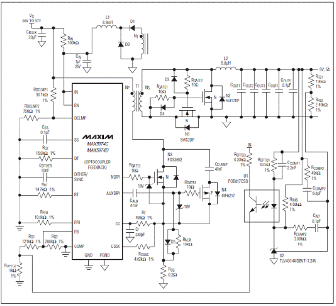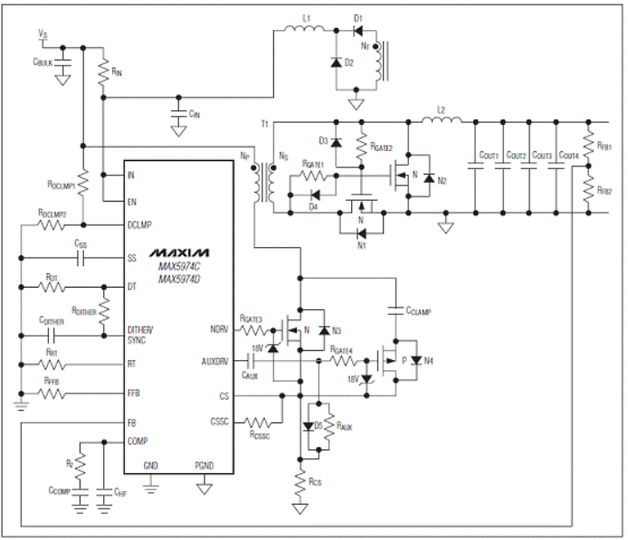 图5。MAX5974C/MAX5974D典型应用电路图(2)